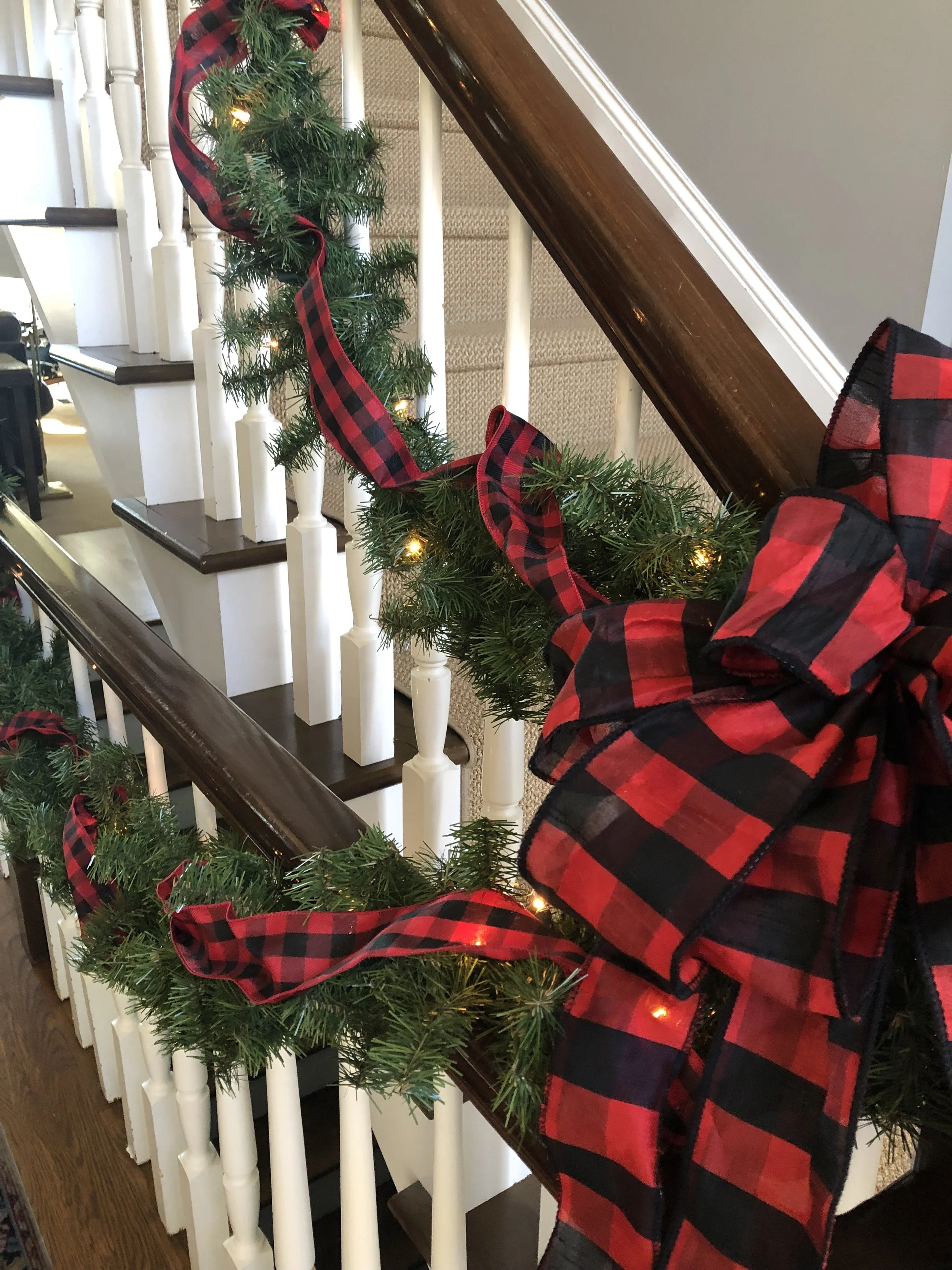 Greens…..used since 1999….fluffed, and fluffed and bent and the lights even still work….Ribbon….one of my favorite used in many ways Christmas decoration additions 2021=$12.98 and more storage in our lower level.